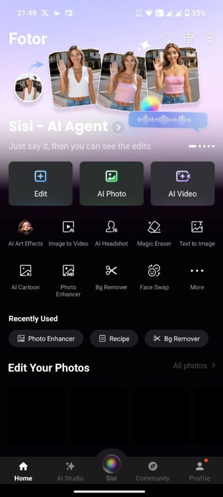 • Edit a Photo” पर टैप करें → अपनी गैलरी से फोटो चुनें।